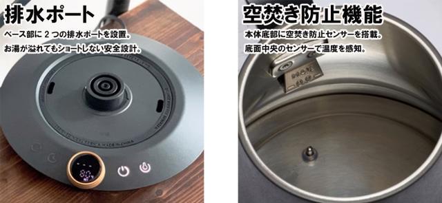 ベース部には2つの排水ポートを設置。万一量を沸かしすぎてお湯が溢れた際にも、ショートなどしないよう安全性も確保しました。
