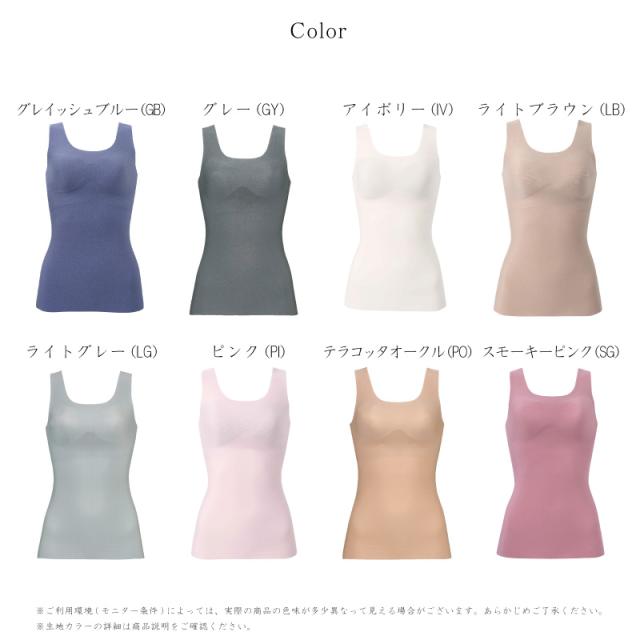 | 特徴 | [ノースリーブ] ・伸びのよい素材を使用しフラット仕上げにすることで、肌に縫い目があたらず、まるでつけていないような着ごこち ・本体素材は、コットン生まれの繊維ベンベルグとポリエステルを複合した快適繊維を使用しているからムレにくい ・立体感と厚みのある左右一体型のピーナッツ型パッドは洗濯耐久性が向上しシワになりにくい ・ピーナッツ型パッド内蔵(取りはずし可能)で、上向きで立体的なバストシルエットでありながら、バストトップ間隔が離れず位置が安定 ・取扱い表示は本体素材にプリントしているから、肌あたりがやさしい ・パッド受け有り/パッド有り(取りはずし可能) ※「ベンベルグ」は旭化成の登録商標です |
