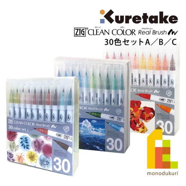 呉竹 ZIGクリーンカラーリアルブラッシュ/30色セットA/B/C(RB-6000AT/30VA/B/C) クレタケ くれたけ カラー筆ペン