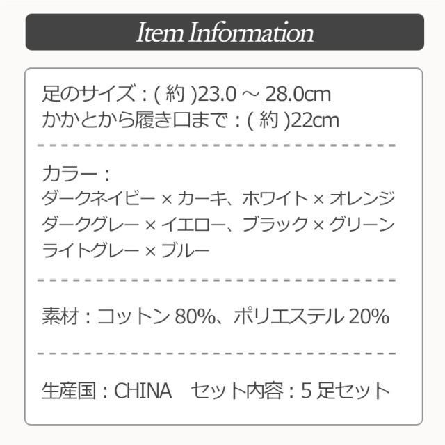 【ツートンカラーがオッしゃれでかっこいい♪クルー丈ソックス 5足セット】