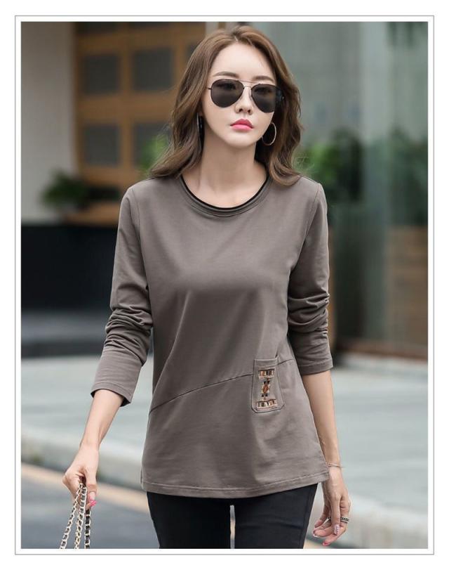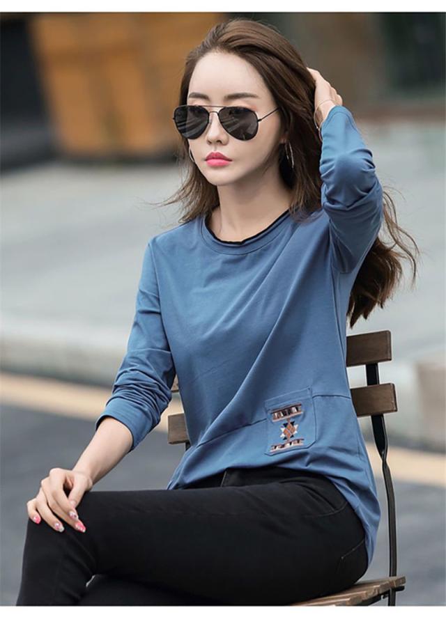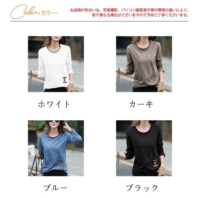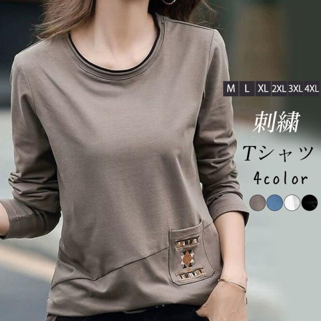 Tシャツ レディース 長袖 カットソー ロンT クルーネック 刺繍 インナー トップス 大きいサイズ ゆったり 切り替え 春秋 シ