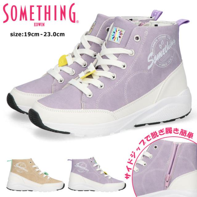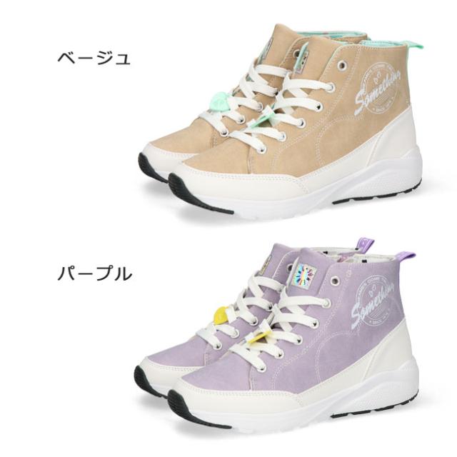 サムシング スニーカー キッズ 女の子 ハイカット サイドジップ 軽量 履きやすい 歩きやすい 疲れない SOM-3174 シューズ 靴