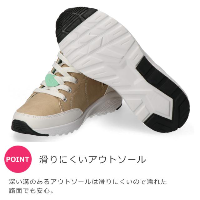 深い溝のあるアウトソールは滑りにくいので濡れた路面でも安心。