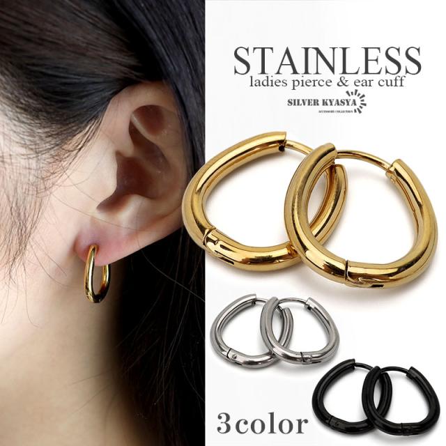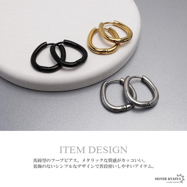 ステンレス素材 両耳 馬蹄ピアス シルバー ブラック ゴールド ホースシューピアス レディース Uピアス ワンタッチ フープピアス 金属アレルギーフリー