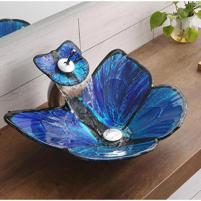 洗面台 個性的なアート鉢 洗面器シンク ブルー 受け皿 セット 水道 高級 ホテル洗面台 おしゃれ ホース 洗面ボウル 和風 洋風 洗面ボール 手洗い器