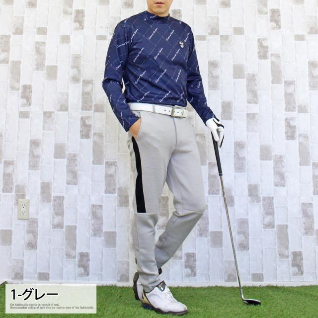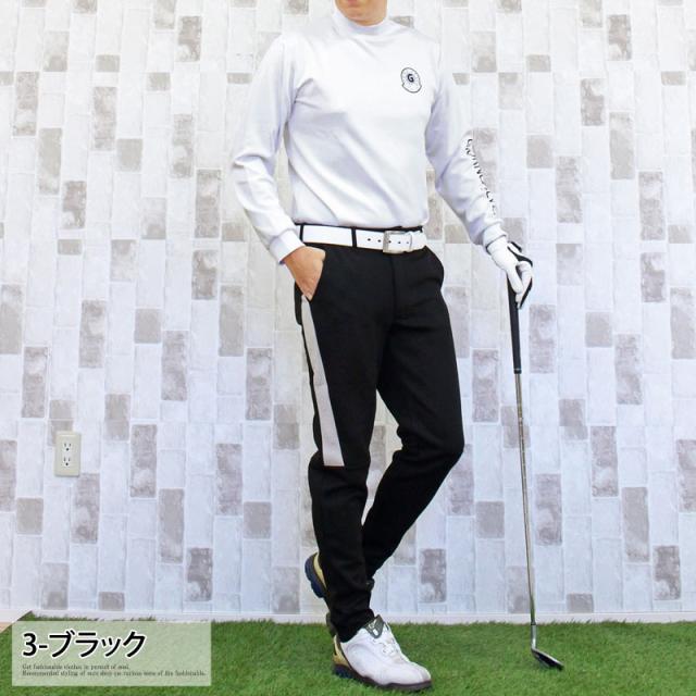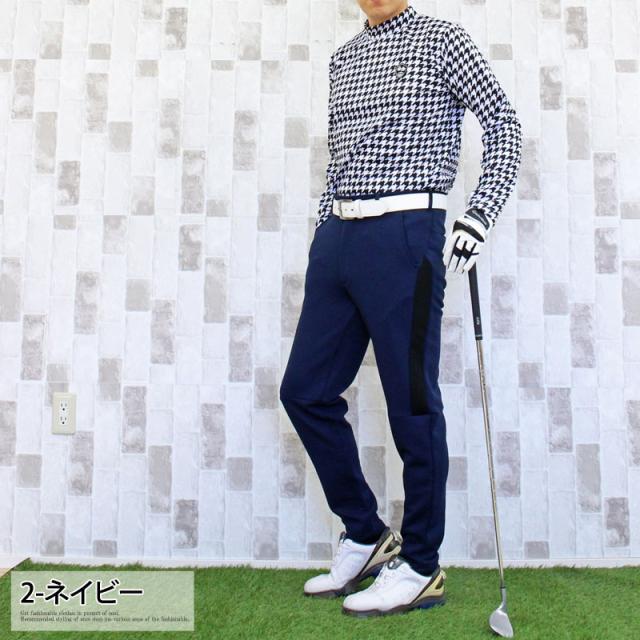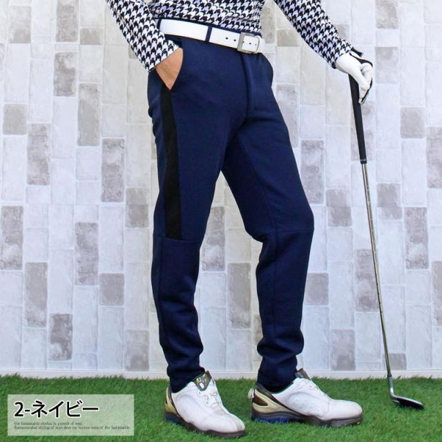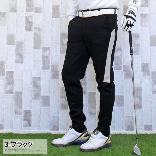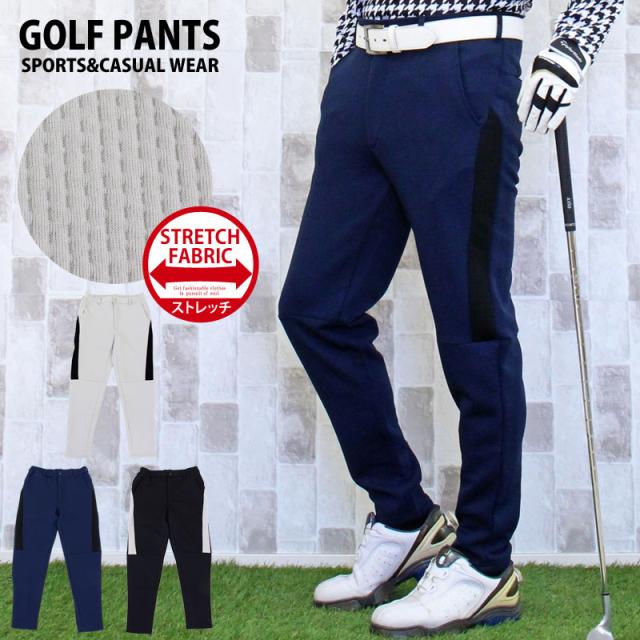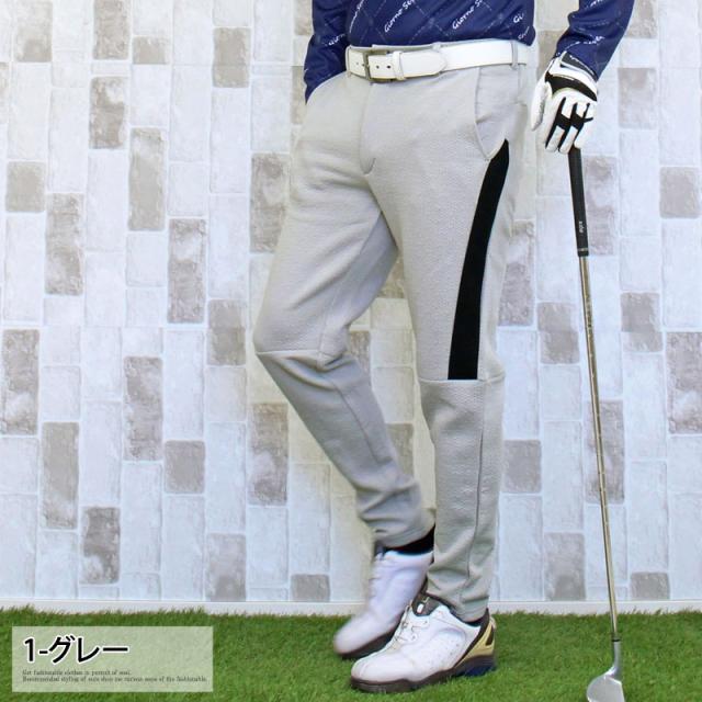送料無料 ゴルフパンツ メンズ ゴルフウェア スポンジエンボス 美シルエット 伸縮 ストレッチ サイドライン ウエストゴム スリム タイト テーパード ジャージスウェット 春夏秋冬 ゆうパケ