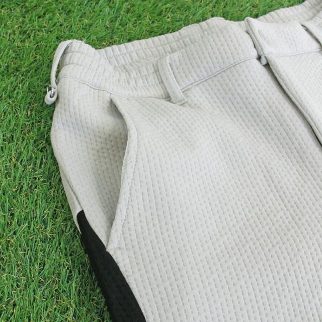 | 特徴 | スポンジエンボス素材の伸縮性の高いストレッチゴルフパンツ。 凹凸のある表面の生地感がおしゃれで 洗練された高級感のあるゴルフウェアです。 サイドラインやダーツ切替がスポーツに最適。 ウエスト部分はゴム仕様で伸縮性がありノンストレス。 ベルトループや後ろにDカンがあるのでゴルフポーチを装着可。 ロングシーズン使用可能なボトムスです。 | |||||