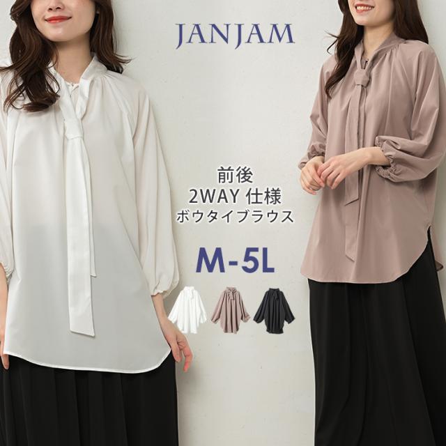 大きいサイズ レディース ボウタイブラウス 7分袖 メール便対応 前後2way リボン シャツ トップス M/LL/3L/4L/5L ゆったりサイズ ぽっちゃり女子 プラスサイズ