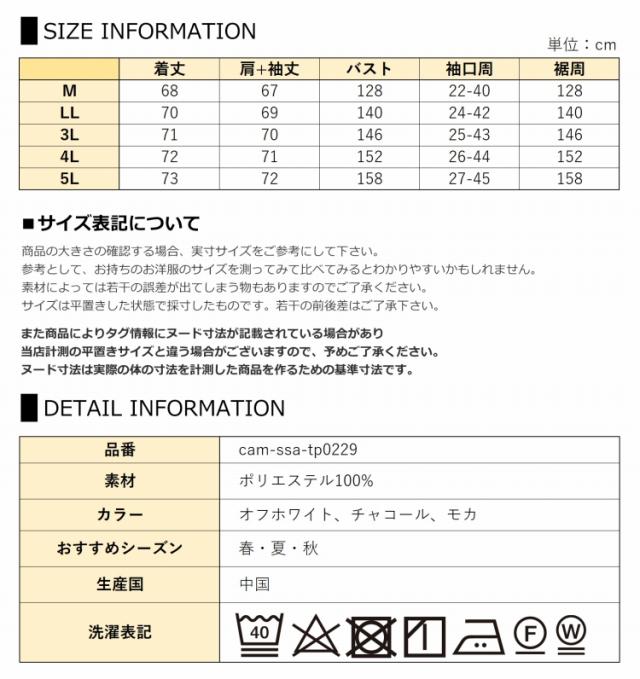 5L:着丈73 肩+袖丈72 バスト158 袖口周27-45 裾周158