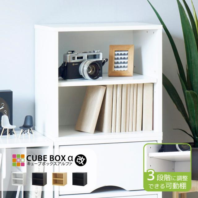 可動棚でより便利に キューブボックスα 改 棚付きタイプ 扉なし 正方形 カラーボックス 1段 木製 収納ボックス 30 棚なし 本棚 A4 白 黒 ナチュラル ブラウン