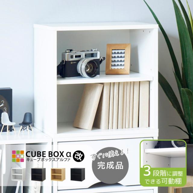 【完成品】 可動棚でより便利に キューブボックスα 改 棚付きタイプ 扉なし 正方形 カラーボックス 1段 木製 収納ボックス 30 棚なし 本棚 A4 白 黒 ナチュラル ブラウン