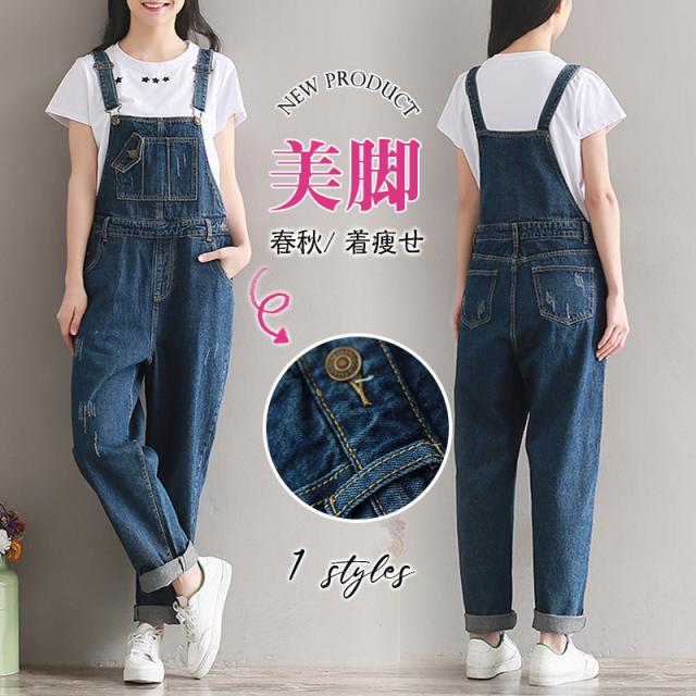 デニムサロペット レディース オーバーオール ダメージ サロペット 春夏秋 デニムパンツ デニムつりズボン ジーンズ カジュアル