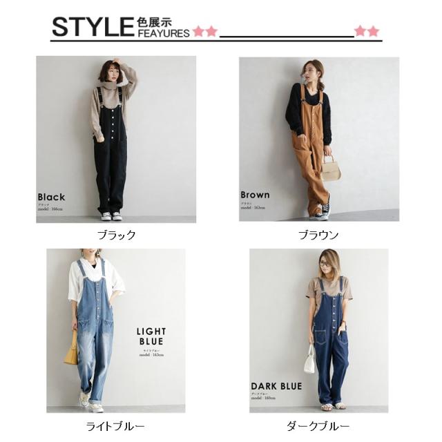 デニムサロペット レディース オーバーオール ガウチョパンツ サロペット ロングパンツ デニムパンツ デニムつりズボン ジーンズ