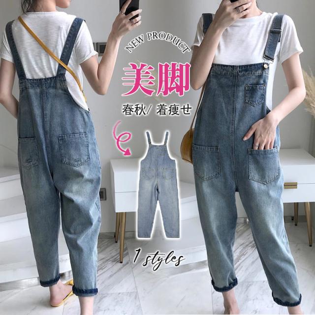 デニムサロペット レディース オーバーオール 可愛い サロペット 9分丈 通学 デニムパンツ デニムつりズボン ジーンズ 体型カバ