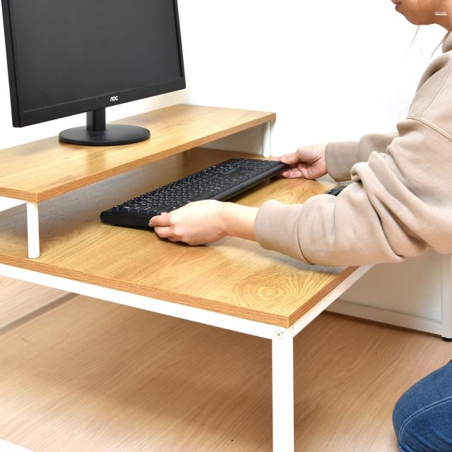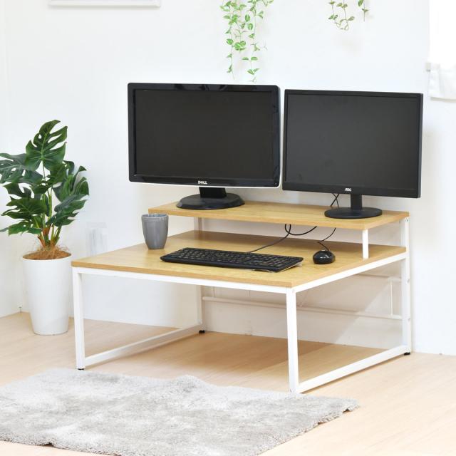 マルチモニターも置けるモニター台付きのロータイプPCデスク