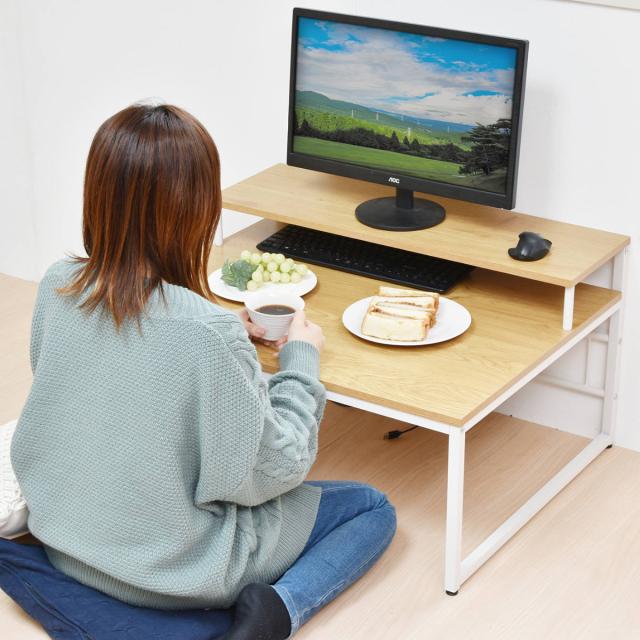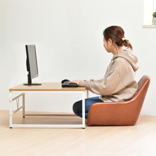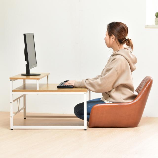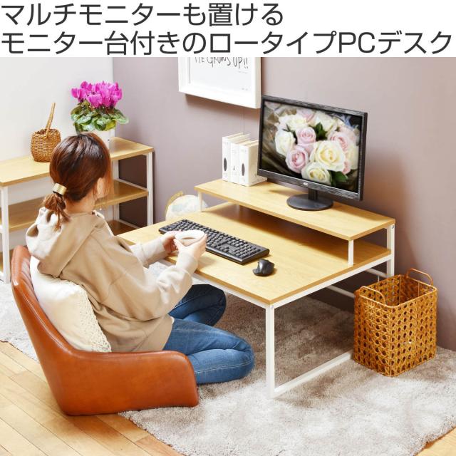 パソコンデスク ロータイプ 省スペース 木目調 幅80cm ( ローデスク デスク パソコン台 モニター台 パソコンラック ワークデスク 机 勉強 書斎 リビング 子ども部屋 マルチモニター シンプル )