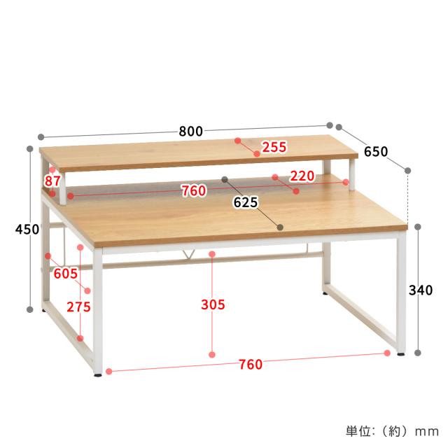 | 耐荷重 | 天板:約40kg 棚板:約15kg 全体約55kg |