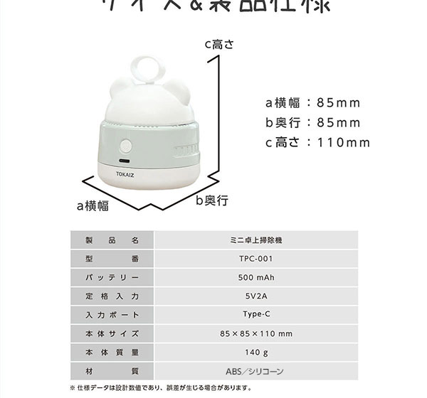 卓上クリーナー・入学祝い・クリスマスの贈り物に・バッテリー内蔵・コードレス・安全性を重視する設計