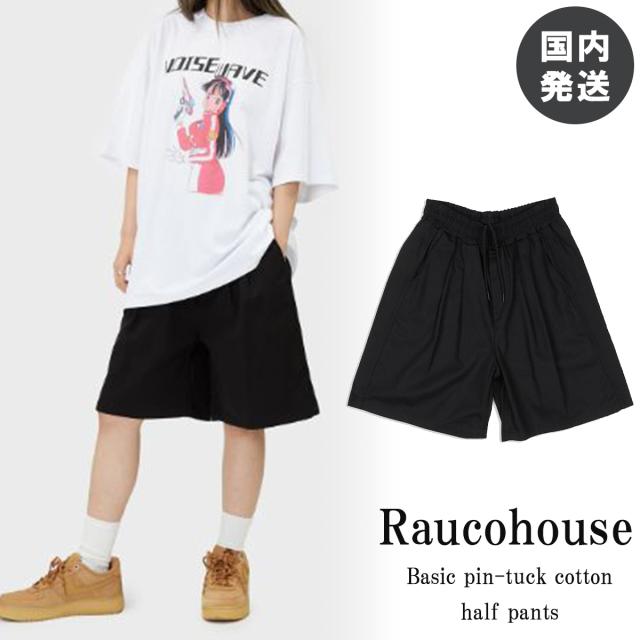 ラウコハウス ハーフパンツ Raucohouse Basic pin-tuck cotton half pants ショーツ 短パン オーバーサイズ ユニセックス 韓国 K-POP グランジファッション メンズ レディース 正規品 [衣類]