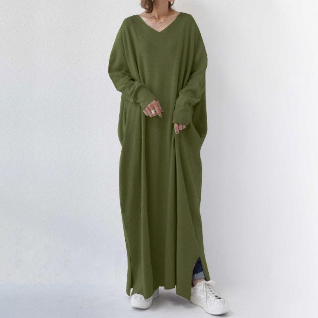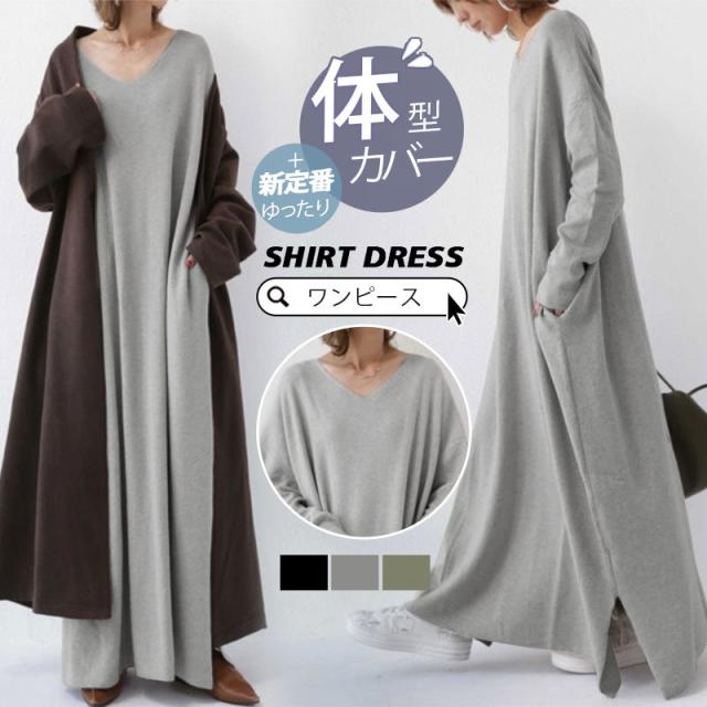 【水曜日まで!10%クーポン配布中】 ワンピース レディース 秋 冬 ニットワンピース vネック マキシワンピース ロングワンピース ゆったり おしゃれ 30代 40代