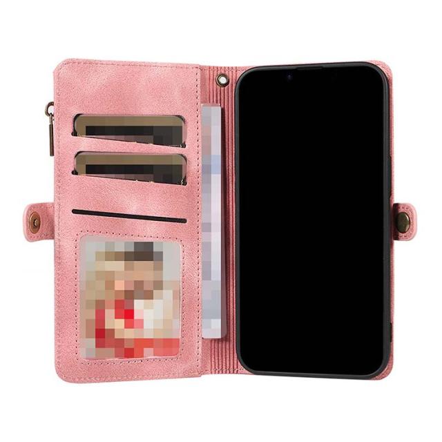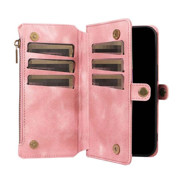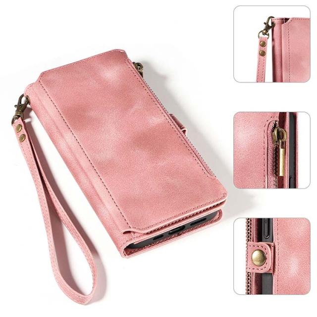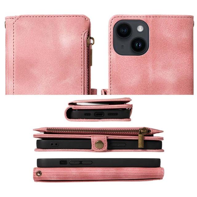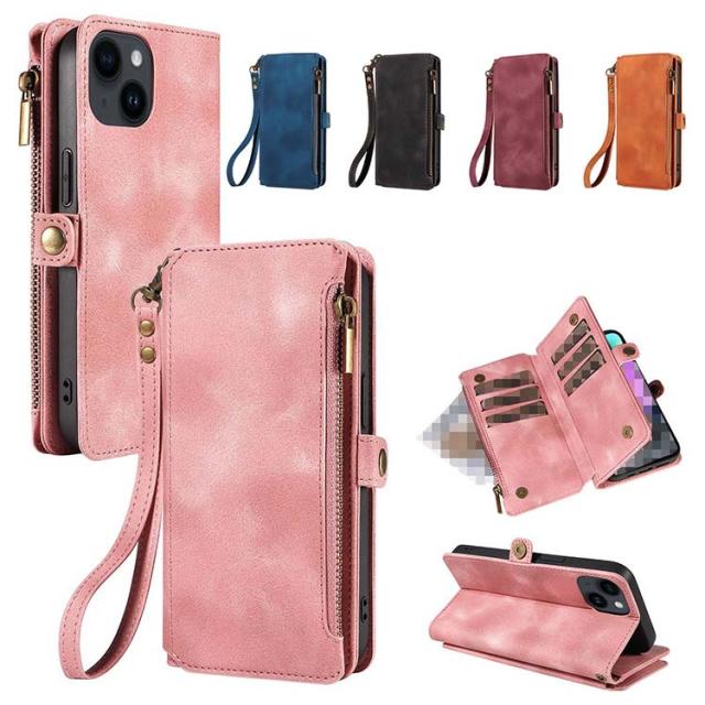iPhone15 ケースカバー スタンド機能 カード収納 ストラップ付き ファスナー付きポケット PUレザー ケース iPhone 15 Plus/15 Pro/15 Pro Max アイフォン15/15プラス/15プロ/15プロマックス おすすめ スマートフォンケース/カバー