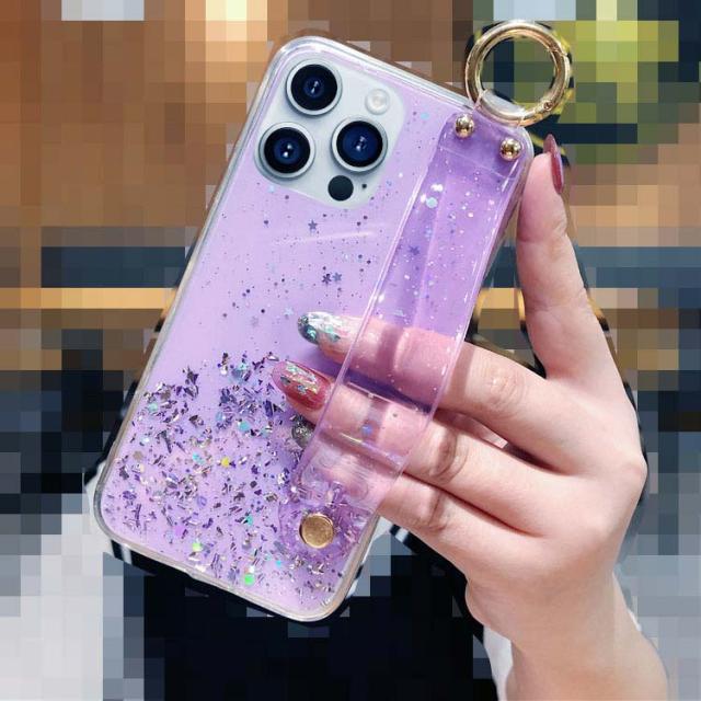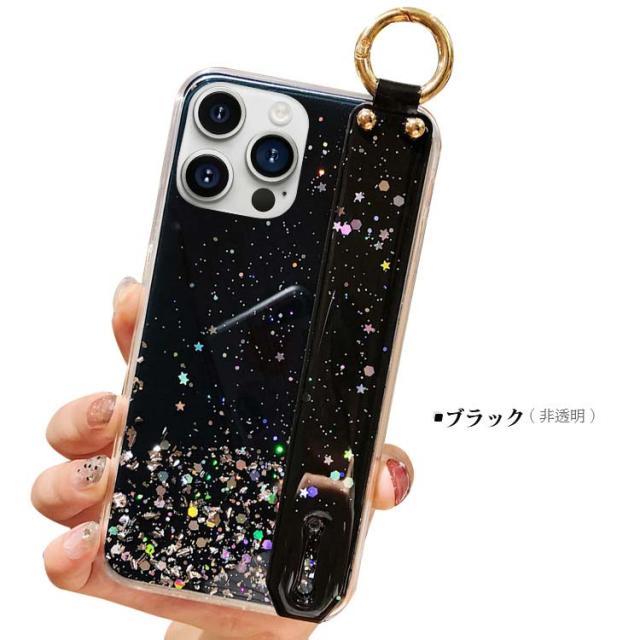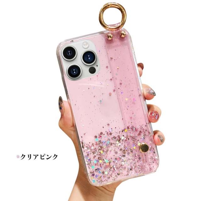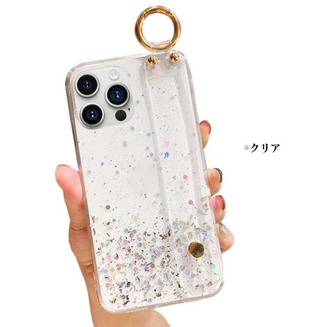 iPhone15 クリアケース カバー 透明 TPU 持ち手 ベルト スマホバンド 落下防止ベルト 片手操作 取っ手 ソフトケース キラキラ おしゃれ かわいい レディース Apple iPhone 15 Plus/15 Pro/15 Pro Max アップル アイフォン15/15プラス/15プロ/15プロマックス おすすめ