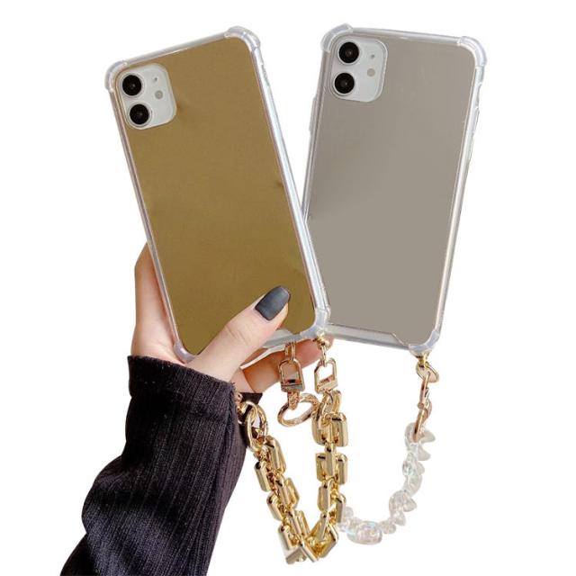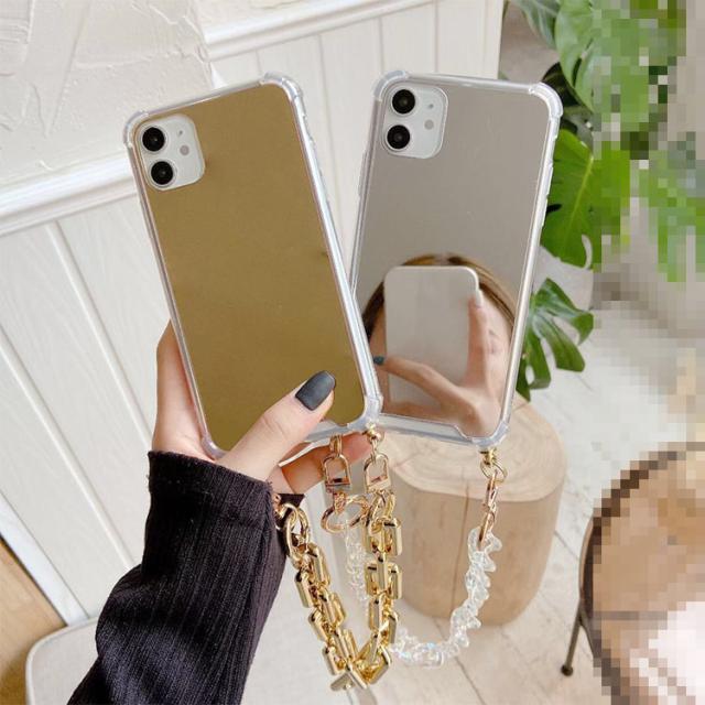 iPhone15 ケース/カバー 背面ミラー 鏡面 ケース/カバー TPU ソフトケース 角 保護 コーナーバンパー 持ち手 ベルト スマホバンド 落下防止 片手操作 取っ手 かわいい レディース iPhone 15 Plus/15 Pro/15 Pro Max アイフォン15/15プラス/15プロ/15プロマックス おすすめ