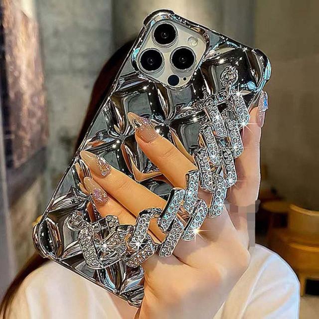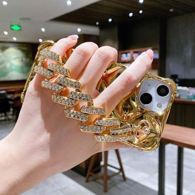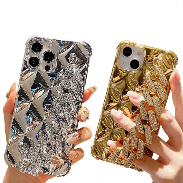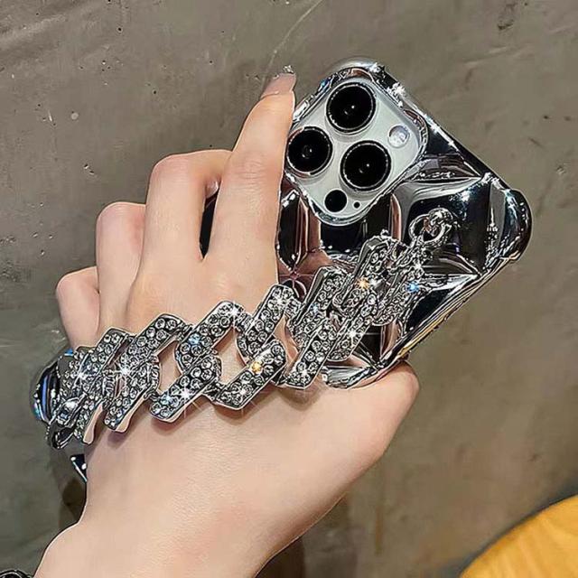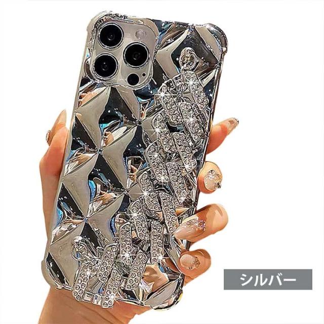 iPhone15 ケース カバー ラインストーン メッキ TPU ソフトケース 持ち手 ベルト スマホバンド 落下防止ベルト 片手操作 取っ手 角 保護 コーナーバンパー かわいい レディース iPhone 15 Plus/15 Pro/15 Pro Max アイフォン15/15プラス/15プロ/15プロマックス ストラップ穴