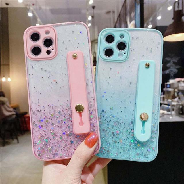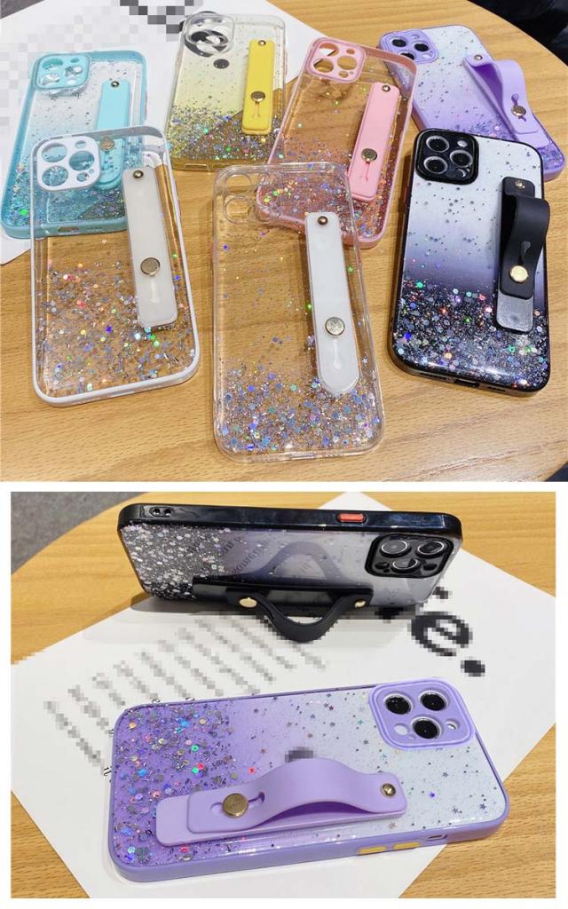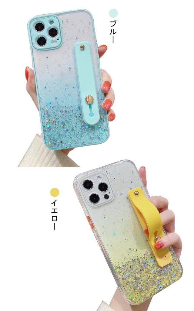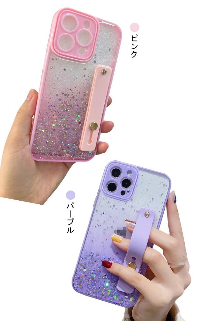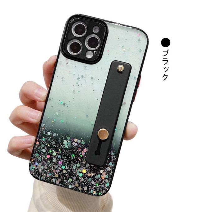 iPhone15 クリアケース カバー 透明 TPU 分離型手持ちバンド スマホバンド 落下防止ベルト 片手操作 取っ手 ソフトケース キラキラ おしゃれ かわいい レディース ストラップ穴 Apple iPhone 15 Plus/15 Pro/15 Pro Max アップル アイフォン15/15プラス/15プロ/15プロマックス