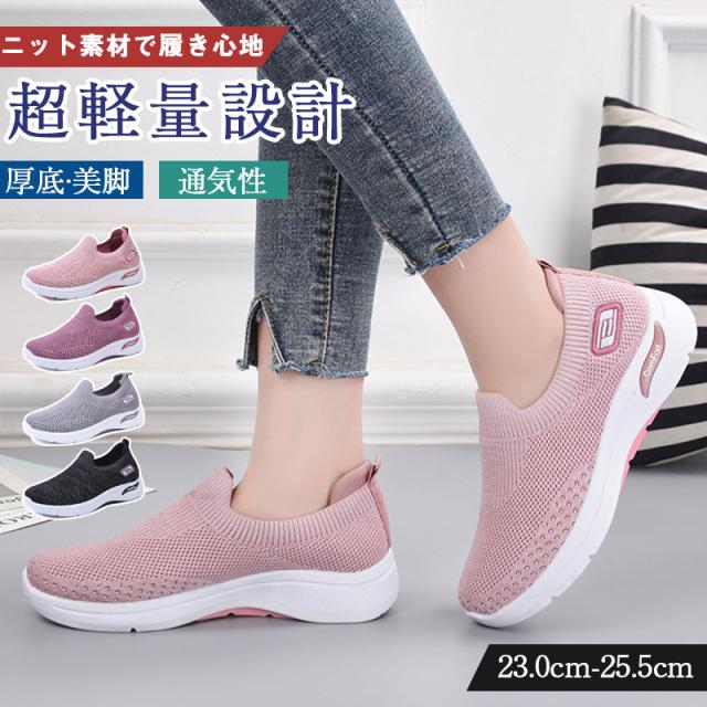 レディース スニーカー 黒 白 シューズ 厚底 秋 靴 歩きやすい 美脚 ぺたんこ スリッポン 軽量 おしゃれ 通気性 幅広 ウォ