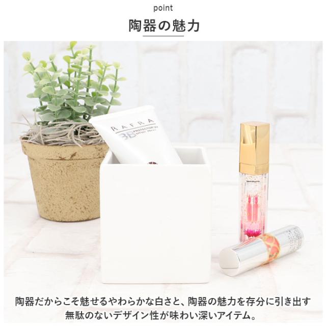 小物入れ 陶器 洗面 通販 コットンボックス 綿棒入れ 収納ボックス 小物 収納 小物ケース 容器 コットンケース 歯ブラシ 化粧ブラシ立て 洗面台 洗面所 サニタリー 可愛い かわいい おしゃれ シンプル ホワイト 白 四角い キューブ ホルダー インテリア
