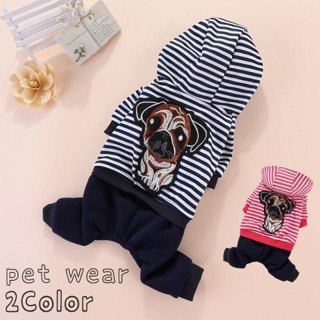 ドッグウェア ペットウェア ツナギ カバーオール つなぎ 犬服 猫服 ペット服 パーカー ボーダー フード付き フレンチブルドッ