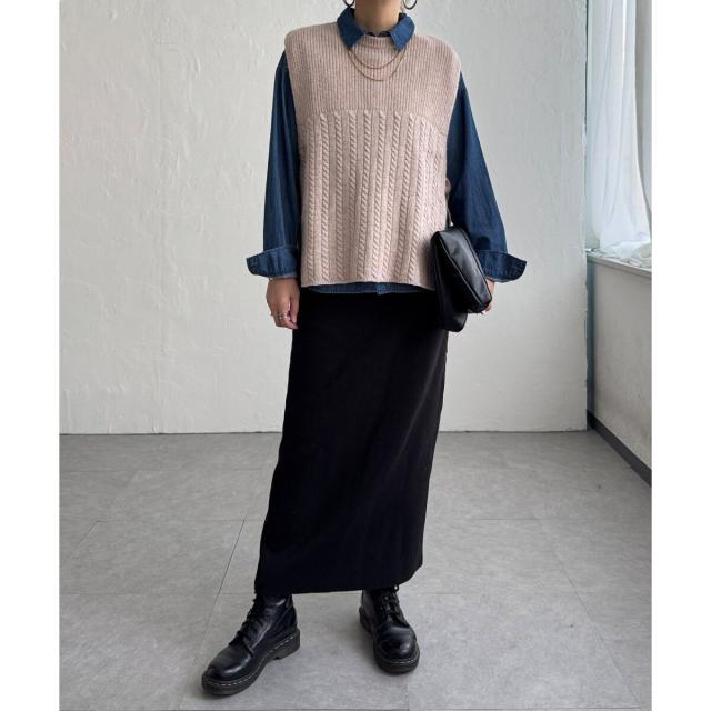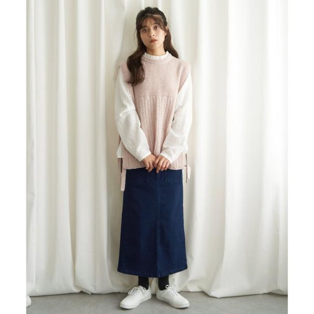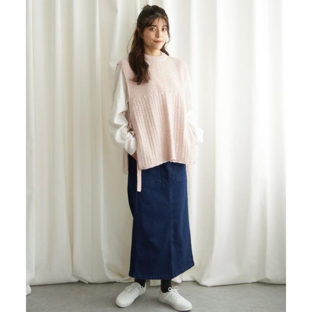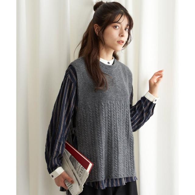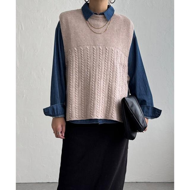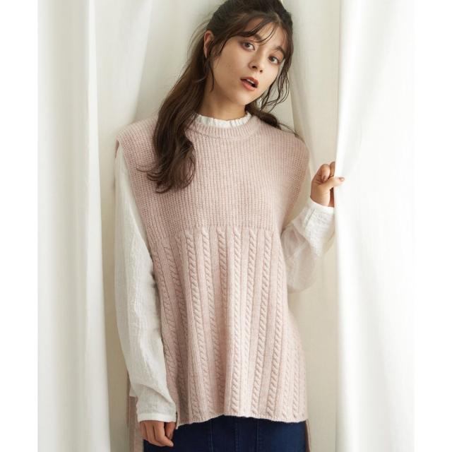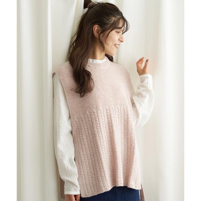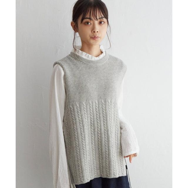 LBC(LBC)/ウール混サイドリボンケーブルベスト