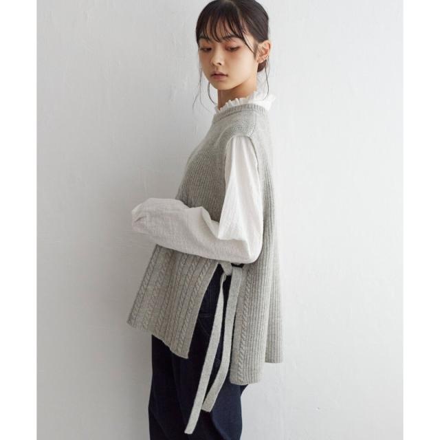 ウール混サイドリボンケーブルベスト