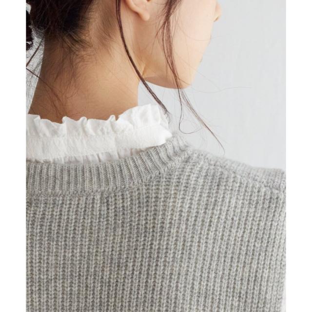 サイド開きのデザインは、インナーレイヤードもラクにでき、ブラウスからロンTなど手持ちアイテムとも簡単に重ね着が可能です。