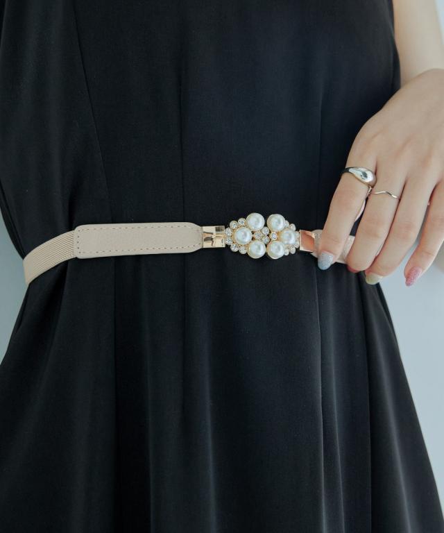 niana ニアナ 存在感あるパールとビジューを並べたエレガントなパーティーベルト。