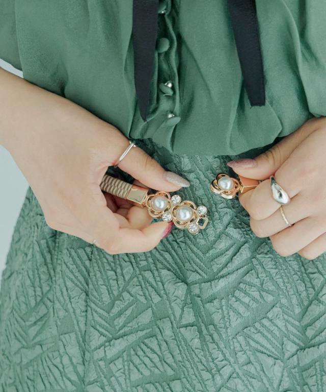 パールとビジューの輝きが華やかさをプラスしてくれます。