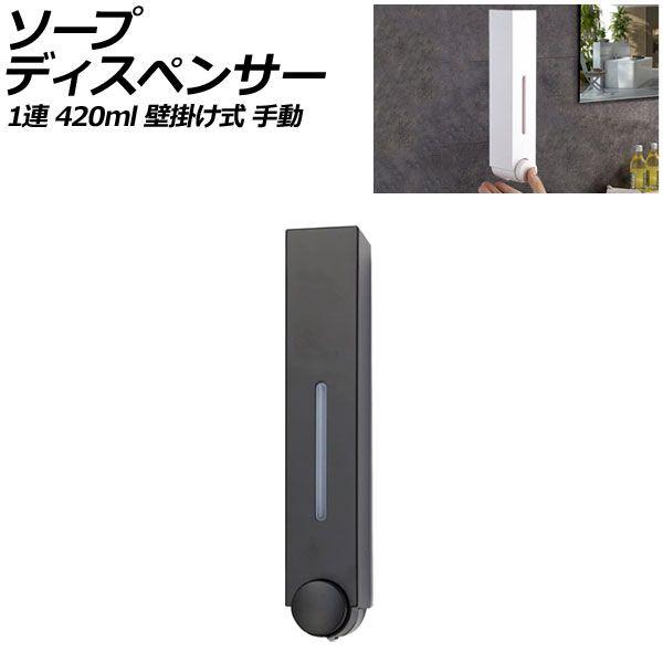 ソープディスペンサー 1連 ブラック プラスチック製 420ml 壁掛け式 手動 ボタンを押すだけのシンプル設計!狭いスペースでも設置可能 AP-UJ0935-1S-BK
