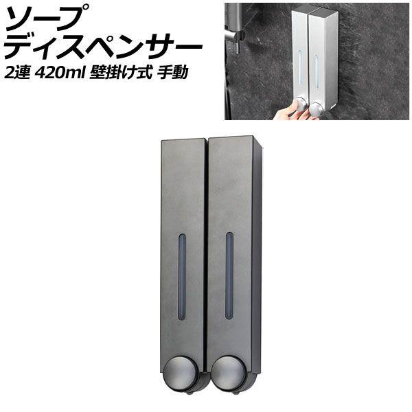 ソープディスペンサー 2連 グレー プラスチック製 420ml 壁掛け式 手動 ボタンを押すだけのシンプル設計!狭いスペースでも設置可能 AP-UJ0935-2S-GY
