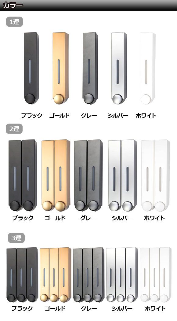 ソープディスペンサー 3連 シルバー プラスチック製 420ml 壁掛け式 手動 ボタンを押すだけのシンプル設計!狭いスペースでも設置可能 AP-UJ0935-3S-SI