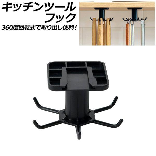 キッチンツールフック ブラック プラスチック製 キッチン小物をすっきり収納!360度回転式で取り出し便利 穴開け不要 AP-UJ0934-BK