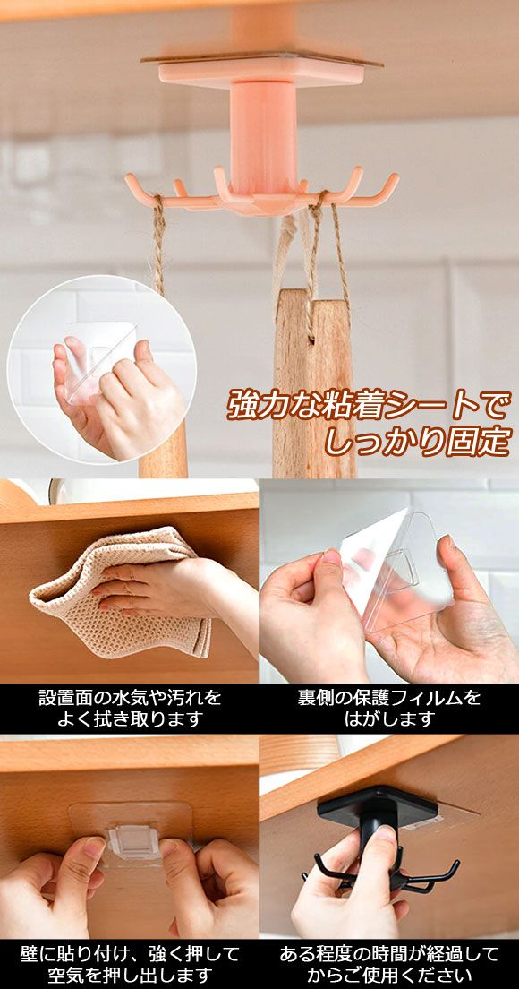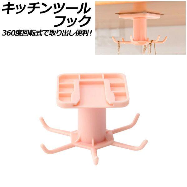 キッチンツールフック ピンク プラスチック製 キッチン小物をすっきり収納!360度回転式で取り出し便利 穴開け不要 AP-UJ0934-PI