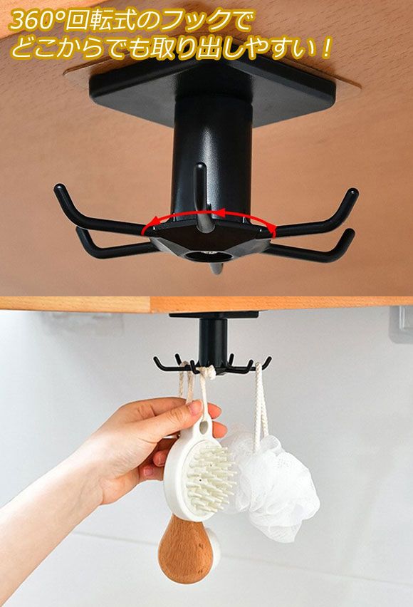 フックは360度回転可能で、取り出しが便利。