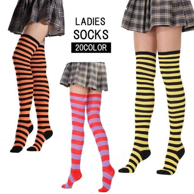 オーバーニーソックス ニーハイソックス レディース 靴下 くつ下 ひざ上 膝上 ロング丈 ボーダー柄 カジュアル おしゃれ コス