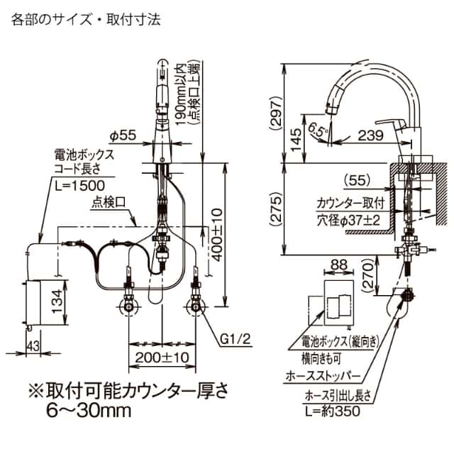 取付けの際に面倒なカウンター下側からの作業が不要です。