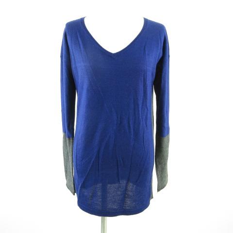 【中古】コムサイズム COMME CA ISM ニットチュニック セーター 長袖 Vネック 青 F *T225 レディース