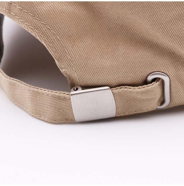 サイズ調整はバックルにておこない、ベルトの先端部分は丸カンに収納可能。