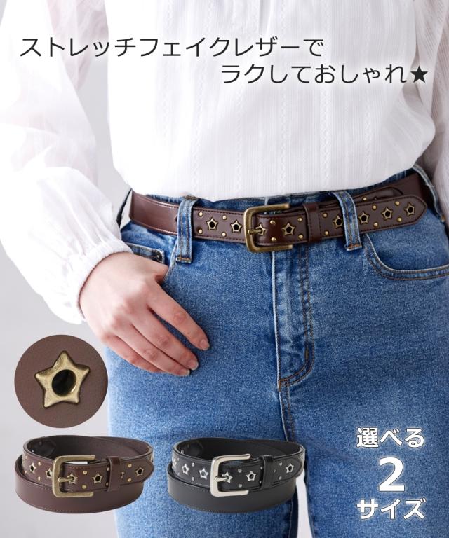 ベルト 大きいサイズ レディース 星ハトメ ストレッチ 選べる2サイズ ブラウン/黒 1/2 ニッセン nissen