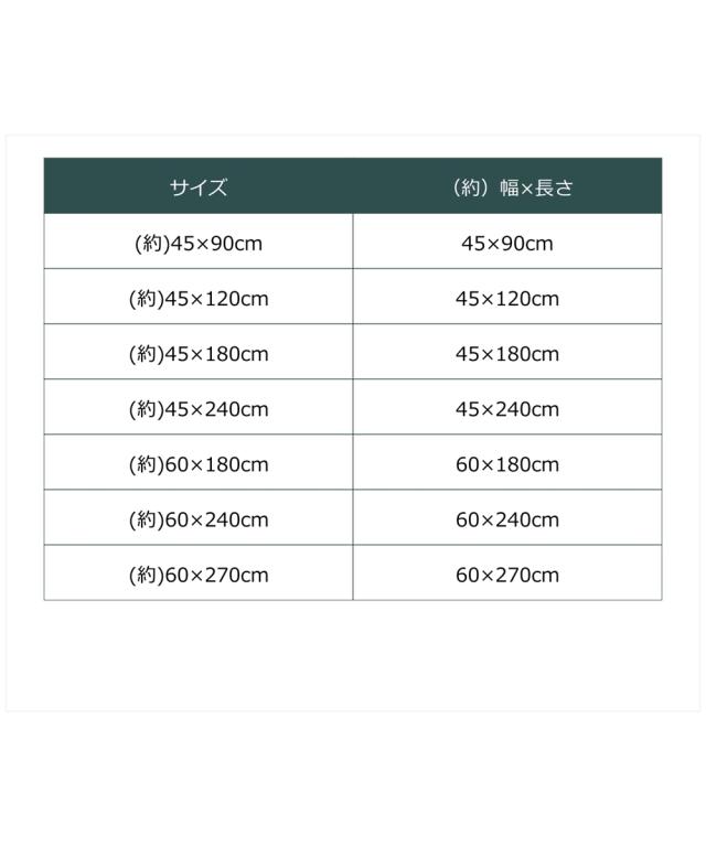 ・ (約)60×270cm はこちら ・ (約)60×180cm/(約)45×240cm はこちら ・ (約)45×180cm はこちら ・ (約)45×120cm はこちら ・ (約)45×90cm はこちら |
