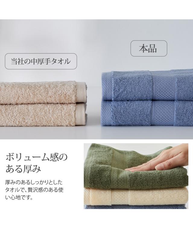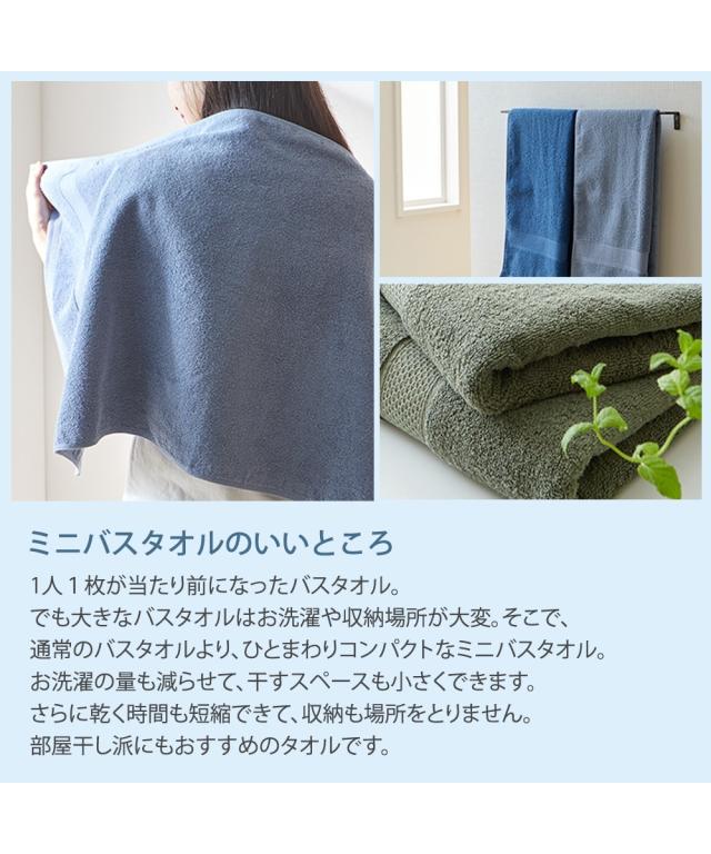 しっかりとした拭き心地で厚みのあるコンパクトバスタオル。使いやすいボリューム感で毎日使いにおすすめ。